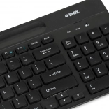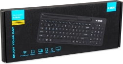 Brezžična tipkovnica iBOX Kallisto prinaša večfunkcionalno rešitev za vaše naprave. Ponuja povezavo tako prek brezžičnega vmesnika USB 2,4 GHz kot tudi prek Bluetootha, kar jo naredi univerzalno izbiro za računalnike in mobilne naprave. Poseben izrez omogoča udobno namestitev mobilne naprave pred uporabnikom, funkcija preklapljanja med seznanjenimi napravami pa olajša delo v raznolikem okolju.
