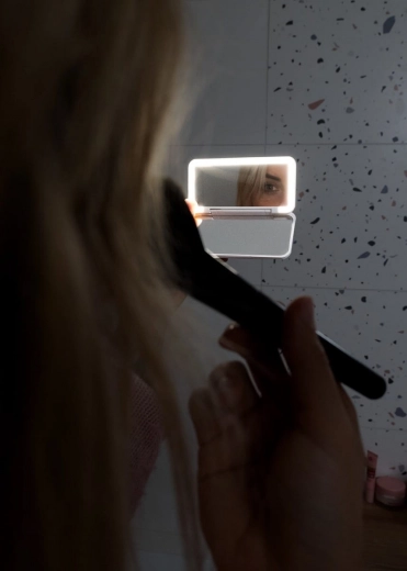 Praktično in stilsko žepno ogledalo, ki bo vaš zanesljiv spremljevalec za hitre popravke videza kadarkoli in kjerkoli. Vgrajene LED diode zagotavljajo jasno in enakomerno svetlobo, zato boste popolno videli vsak detajl tudi pri šibki ambientni osvetlitvi. Osvetlitev se samodejno vklopi ob odprtju in ob zaprtju ugasne – udobno in varčno.