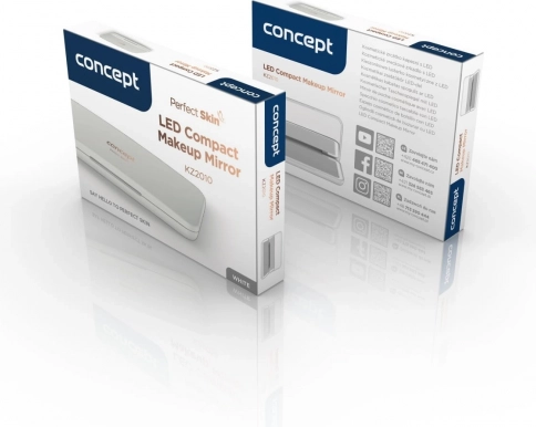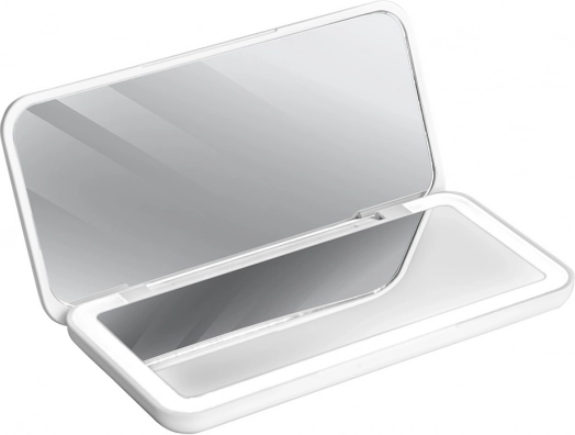 Dve ogledalni površini, vključno z 2× povečevalnim ogledalom, olajšata natančen nanos ličil, urejanje obrvi in podrobno nego kože. Kompaktno ohišje v beli barvi se zlahka prilega torbici ali kozmetični torbici, z potovalnim etuijem pa je zaščiteno pred poškodbami.