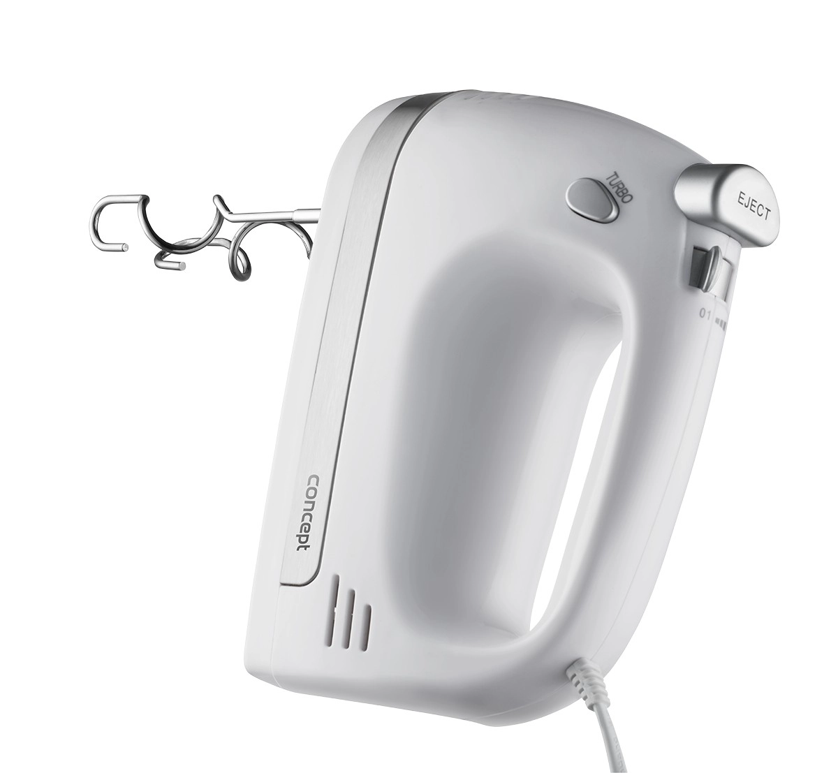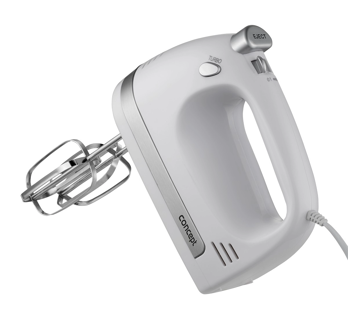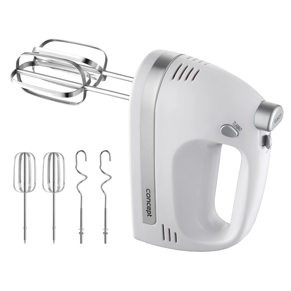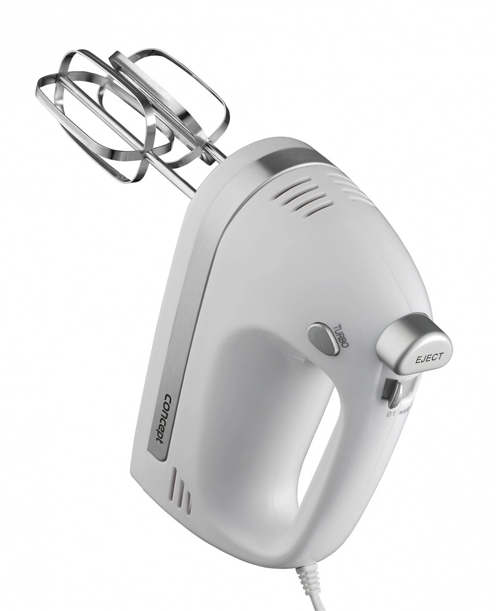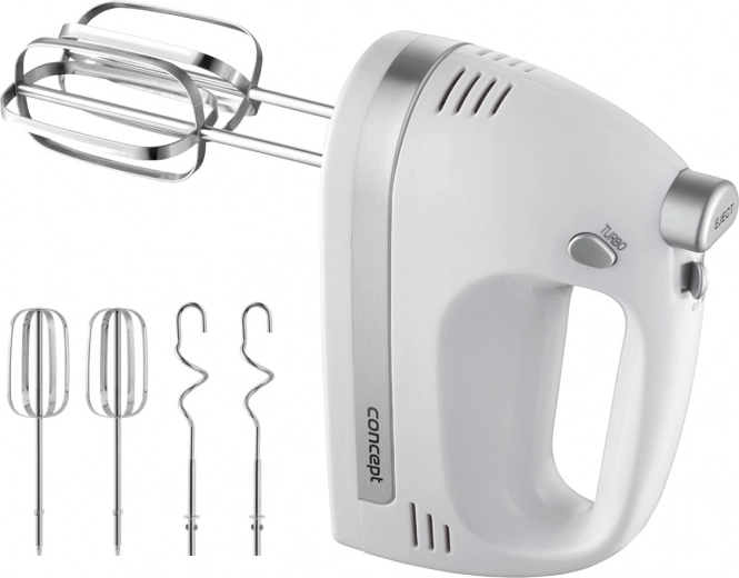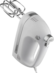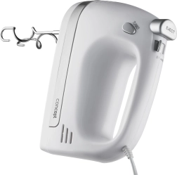 V kompletu so metlice za stepanje za kreme, beljake in biskvitna testa ter gnetilni kavlji za kvašeno, krušno ali pico testo. Ergonomska oblika in majhna teža zagotavljata udoben oprijem tudi pri daljši uporabi. Za varnost in zaščito motorja skrbi vgrajen varnostni element proti pregrevanju.