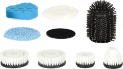 Set vključuje različne krtače in blazinice za drgnjenje, pranje in poliranje. Zlahka očistite ploščice, fuge, sanitarno opremo, steklo in kuhalno ploščo.