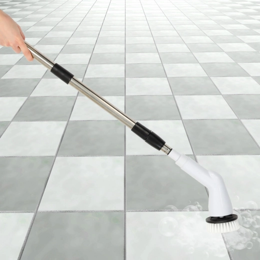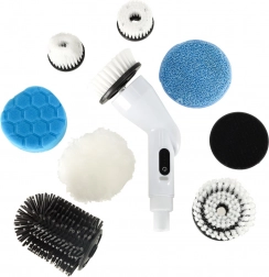Zamenljive glave vključujejo krtače, gobice in polirne blazinice za različne površine – ploščice, fuge, kadi, pomivalna korita, steklo in kuhalne plošče. Vgrajen akumulator 3,7 V / 2000 mAh nudi do 30 minut delovanja z enim polnjenjem, enostavno polnjenje pa poteka prek USB kabla.