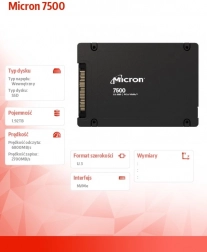 Micron 7500 SSD je najnaprednejši PCIe Gen4 SSD na svetu, namenjen podatkovnim centrom, kot prvi, ki uporablja več kot 200 plasti pomnilnika NAND. Ta disk je zasnovan z najsodobnejšo tehnologijo za zagotavljanje nizke in stabilne latence QoS, vrhunske zmogljivosti v širokem spektru delovnih obremenitev ter obsežne podpore funkcijam Open Compute Project (OCP) v standardnem vdelanem programju.
