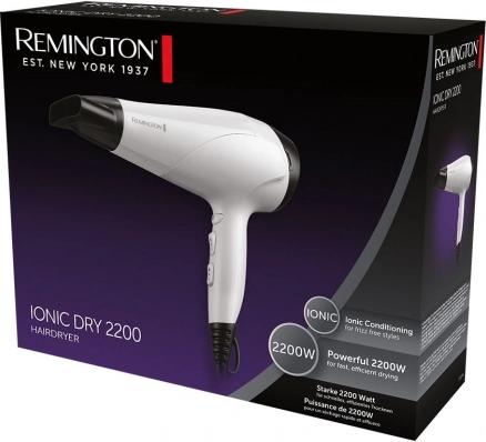 Remington Ionic Dry 2200 je zanesljiv vsakodnevni pomočnik, ki ukroti neukrotljive pramene in jim doda gladek zaključek brez krepanja. Ionska tehnologija sprošča milijone negativnih ionov, ki zmanjšujejo statično elektriko ter lase pustijo sijoče, svilnate in prožne.