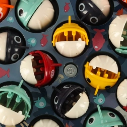 Prepustite se svetu jezer, morij in oceanov. Lovljenje ribic je preprosto za razumevanje, a presenetljivo zasvojljivo. Po vstavitvi baterij namestite ribice v odprtine, vklopite vrtečo podstavo in lov na ulov se začne. Ribice se med vrtenjem odpirajo in zapirajo – ujeti jih zahteva oster refleks in mirno roko.