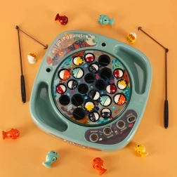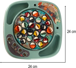 Zabavna družinska igra lovljenja ribic spremeni vsak popoldan v majhno vodno odpravo. Vrteča podlaga premika ribice, ki odpirajo usteca, igralci pa jih poskušajo ujeti s palico. Igra razvija motoriko, pozornost in zbranost, ponuja 2 palici, 24 ribic ter zvočne učinke z možnostjo izklopa. Odlična ideja za darilo za otroke od 3 let.
