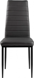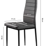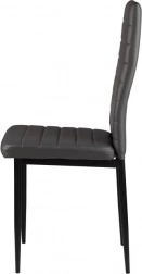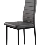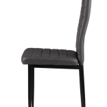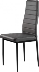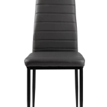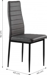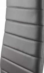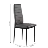 Komplet štirih stolov odlično dopolni vašo jedilnico ali dnevni prostor zahvaljujoč moderni zasnovi z ergonomskimi elementi. Sivo oblazinjenje iz eko usnja z vodoravnim prešitjem ne le dobro izgleda, temveč nudi tudi maksimalno udobje pri sedenju. Črne kovinske noge zagotavljajo stabilnost in vzdržljivost.