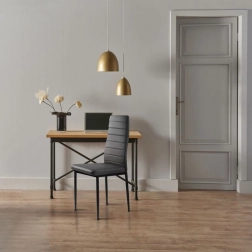 Kombinacija sivega eko usnja in črnih kovinskih nog stolom daje eleganten in moderen videz, ki se poda v vsak interier.