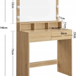 Uredite si svoj kotiček za ličenje s to izjemno kozmetično toaletno mizico v dekorju hrast Sonoma. Veliko ogledalo, obdano z LED osvetlitvijo, zagotavlja popolno svetlobo za vaše lepotne rituale. Mizica z dvema predaloma in tremi pregradami nudi dovolj prostora za vse vaše kozmetične potrebščine.