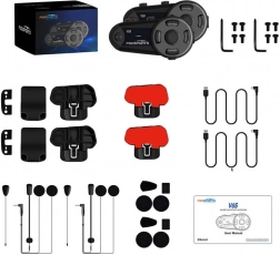 Opremljeni z Fodsports V6S boste ostali v stiku z drugimi motoristi ali družino, ne da bi izgubili osredotočenost na cesto. Ta komplet vključuje dva interkoma, ki zagotavljata kristalno čist zvok zahvaljujoč napredni tehnologiji odpravljanja hrupa CVC in dosegu do 1000 metrov.