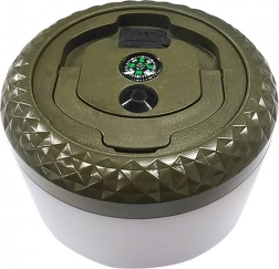 Z akumulatorjem 1800 mAh sveti do 24 ur, odvisno od načina. Napolnite jo v približno 3 urah prek USB‑C, po potrebi pa služi tudi kot powerbank za telefon ali čelno svetilko. Lahka zasnova (le 230 g) in zložljiva kljukica olajšata obešanje v šotor, na vejo ali vrvico.