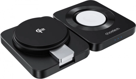 Zložljivi magnetni polnilnik 3 v 1 CHOETECH Qi2 omogoča hkratno polnjenje iPhona, Apple Watch in AirPods z močjo do 15 W za iPhone ter 5 W za ure in slušalke. Zahvaljujoč tehnologiji Qi2, magnetnemu pritrjevanju in naprednim zaščitam zagotavlja hitro, varno in udobno polnjenje doma in na poti.
