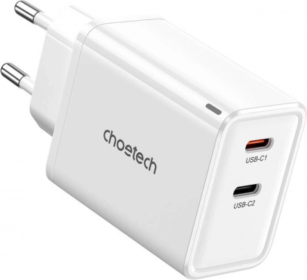 Kompakten omrežni polnilec Choetech s tehnologijo GaN ponuja hitro polnjenje do 65 W in dva USB‑C priključka za hkratno napajanje dveh naprav. Podpira Power Delivery, Quick Charge 3.0 in FCP ter pametno razdeli moč 45 W + 20 W. Zahvaljujoč napredni zaščiti je polnjenje varno in stabilno za prenosnike, telefone in tablice.
