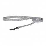 Vzdržljiv najlonski povodec z odsevnim vzorcem povečuje varnost pri večernih sprehodih. Kovinska karabinka omogoča hitro in zanesljivo pripenjanje na oprsnico.