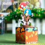 Uživajte v sestavi podrobnega barvnega modela para ptičkov na veji, ki bo po dokončanju vašo polico oživil s prijetnim zvokom in nežnim gibom. Kakovostni leseni deli z natančnim potiskom se natančno prilegajo in skupaj s kovinskimi elementi tvorijo stabilno mehansko glasbeno skrinjico.