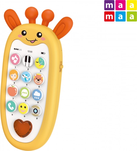 Ta ljubek žirafin telefon bo postal priljubljeni spremljevalec vašega malčka. Ob pritisku na gumbe oddaja barvite svetlobne učinke in prijetne zvoke, ki spodbujajo radovednost in učijo razumevanja vzroka in posledice. Zaradi kompaktne velikosti 13,5 cm ga otroci zlahka držijo in uporabljajo.