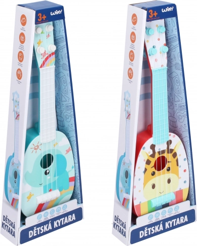 Ta otroška kitara z motivom afriških živali je idealna za male začetnike. Ima štiri umetne strune in dolžino 37 cm, kar jo naredi popolno izbiro za enostavno držanje in igranje.