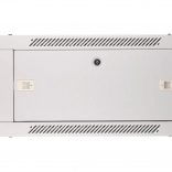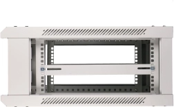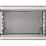 Ta stenska rack omarica 4U združuje robustno izdelavo iz hladno valjanega jeklenega pločevinastega lista z elegantnimi zastekljenimi vrati iz kaljenega stekla. Vrata je mogoče prestaviti na levo ali desno stran, zato zlahka prilagodite smer odpiranja prostoru.