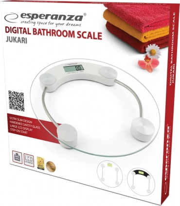 Ohranite pregled nad svojo telesno kondicijo z osebno tehtnico ESPERANZA JUKARI. Združuje sodoben dizajn, zanesljivo natančnost in preprosto upravljanje. Zaradi kompaktne zasnove se prilega vsaki kopalnici in zagotavlja hitre rezultate z enim korakom.