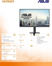 ASUS VA27DQFS združuje čist dizajn in praktične funkcije za moderno pisarno in domačo delovno okolje. Z 27" diagonalo in IPS tehnologijo dobite ostro sliko z doslednimi barvami in širokimi vidnimi koti, medtem ko osveževanje 100 Hz zagotavlja bolj tekoče pomikanje, boljšo berljivost in prijetnejšo izkušnjo pri videu.