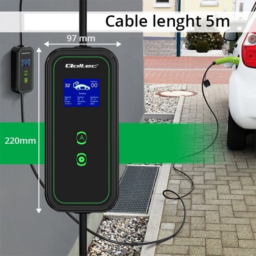Uživajte v največji prilagodljivosti s prenosnim polnilnikom Qoltec, ki je združljiv z večino električnih vozil, prodanih v Evropi, zahvaljujoč vtiču tipa 2. Polnilnik je opremljen s funkcijo regulacije polnilnega toka z možnostmi 16 A, 20 A, 24 A in 32 A, kar omogoča prilagoditev polnjenja vašim specifičnim potrebam.