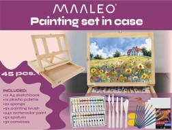Ta umetniški set je popolna izbira za vse, ki želijo začeti s slikanjem ali svojo ustvarjalnost dvigniti na višjo raven. Vsebuje 45 delov, vključno z akvarelnimi barvami, čopiči in platni – vse, kar potrebujete za ustvarjanje čudovitih umetniških del.