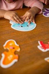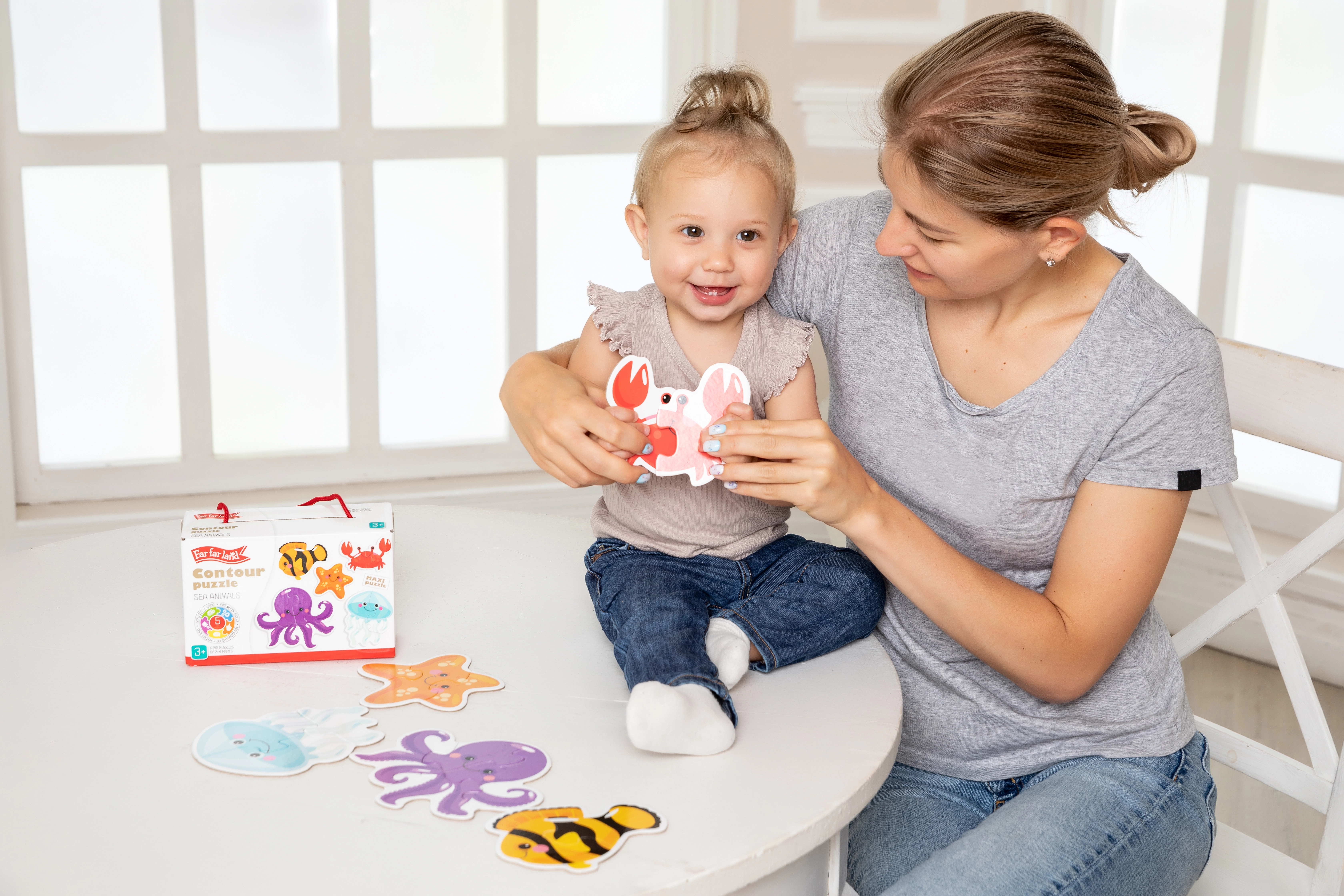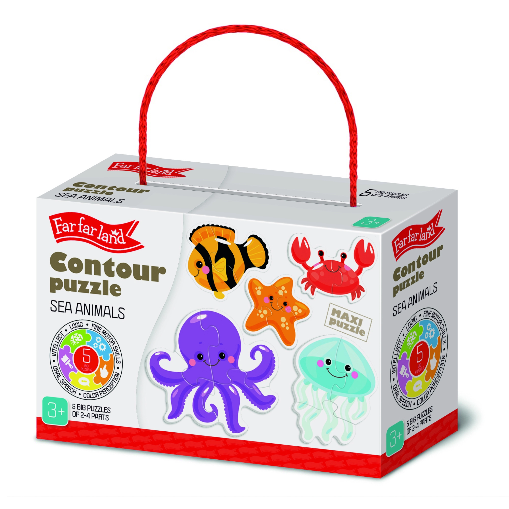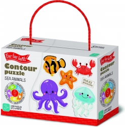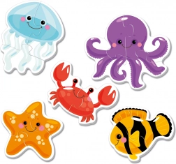 Odkrijte svet morja z obrisnimi puzzlami, namenjenimi najmlajšim. Vsaka od 5 slik je sestavljena le iz 2–4 koščkov, zato bodo otroci hitro doživeli uspeh in veselje pri sestavljanju. Žive barve in pregledne oblike spodbujajo osredotočenost in razvoj spretnosti.