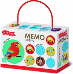 Komplet za igranje vsebuje 28 kartic v obliki kroga, ki so posebej zasnovane za fante. Igra spomin ni le zabavna, ampak tudi poučna, saj pomaga razvijati spomin in pozornost vaših otrok.