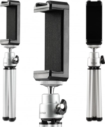 Mini stativ Hama Fancy 2v1 je univerzalno orodje, primerno za fotografiranje in snemanje videoposnetkov. Prakti0dni nosilec za telefon omogo0da hitro izmenjavo naprav in je zdru7eljiv tako s telefoni kot s fotoaparati zahvaljujo0di 1/4'' vijaku.