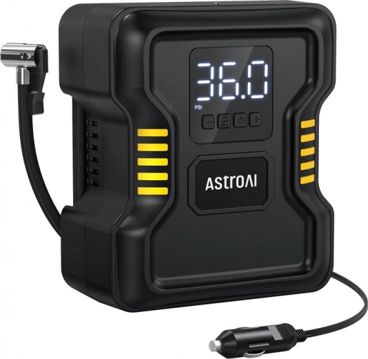 AstroAI prinaša zanesljivo rešitev za vsakodnevno in nujno polnjenje pnevmatik. Natančna nastavitev ciljnega tlaka in funkcija auto stop ščitita pred prekomernim polnjenjem, kar izboljšuje vodljivost vozila in podaljšuje življenjsko dobo pnevmatik. Osvetljen digitalni zaslon in integrirana LED svetilka olajšata uporabo tudi v slabših svetlobnih razmerah.