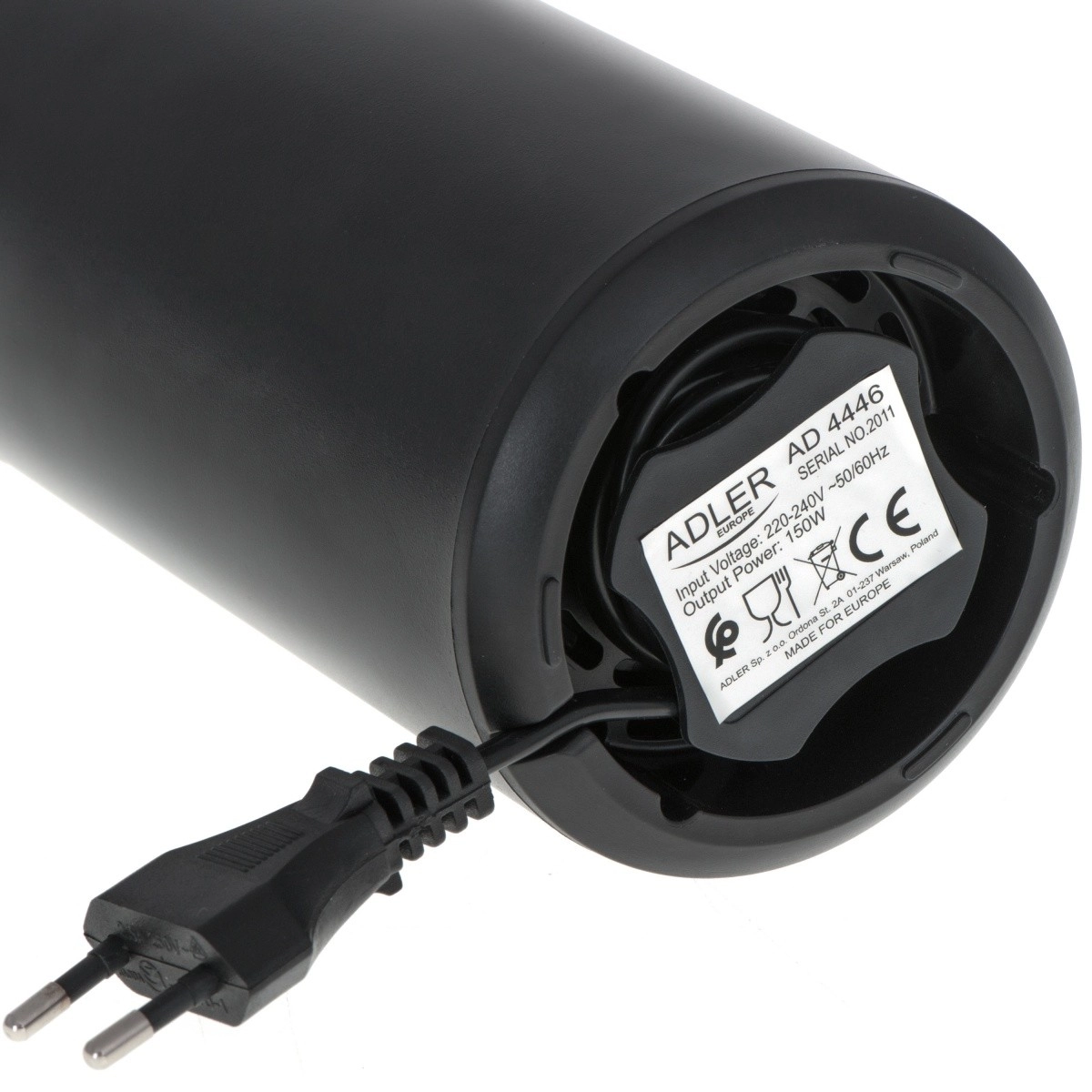 Električni mlinček za kavo Adler z močjo 150 W omogoča hitro mletje kavnih zrn, kar prihrani vaš čas in vam zagotavlja svežo kavo, kadar koli jo potrebujete.