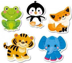 Komplet vsebuje 5 obrisnih sestavljank z motivi živali