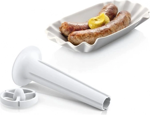 Priložen je ribalni nastavek za rezanje in ribanje zelenjave, sirov, oreščkov ali čokolade – brez omejitve količine. Priljubljen je boben za ribanje krompirja za krompirjeve palačinke. Praktični nastavek za polnjenje klobas omogoča pripravo domačih dobrot natančno po vašem okusu – perutninskih, svinjskih, govejih ali vegetarijanskih. Funkcija REVERSE sprosti sestavine ob morebitni zagozditvi, zato je naprava takoj znova pripravljena na delo.