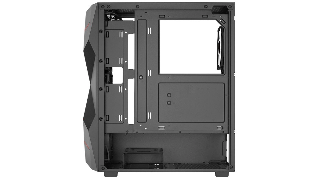 Volcan prinaša izrazit fazetiran sprednji panel z RGB osvetlitvijo in zračno šestkotno mrežico za odličen pretok zraka. Bočnica iz kaljenega stekla poudari komponente in usklajeno osvetlitev. Zahvaljujoč premišljenemu interierju z 24,5 mm prostora za kable in tunelom za PSU boste sestavili čisto in pregledno konfiguracijo brez kompromisov.