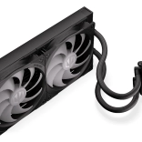 Srce sistema je asimetričen vodni blok, povezan s črpalko na keramičnem ležaju in PWM upravljanjem, ki prilagaja vrtljaje trenutni obremenitvi. Radiator 280 mm je uglašen za ventilatorje Fluctus, prožne cevi dolžine približno 39 cm pa poenostavijo montažo skoraj v kateremkoli položaju znotraj ohišja.