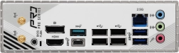 Vrhunska brezžična povezljivost 802.11ax (6E) z Bluetooth, hiter žični 2.5G LAN ter široka ponudba USB, HDMI in DisplayPort na zadnji ploščici.
