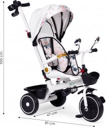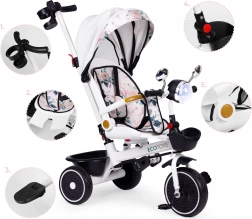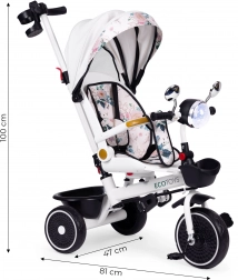 Starši bodo cenili popoln nadzor nad smerjo vožnje zahvaljujoč povezavi vodilne palice z balanco trikolesnika. Konstrukcija je zasnovana za stabilnost (široka zadnja os), enostavno vzdrževanje in dolgo življenjsko dobo. Največja nosilnost je 25 kg, masa trikolesnika pa le 7,8 kg – idealen partner za vsakodnevne sprehode.