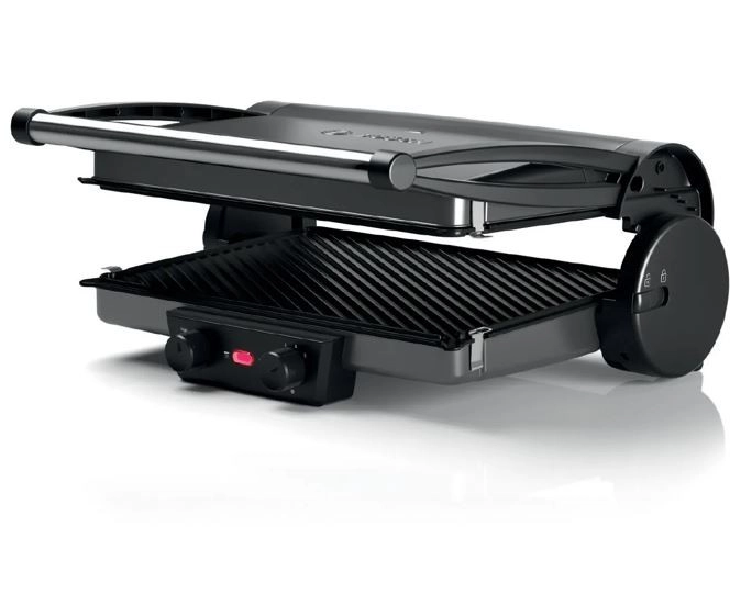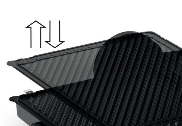 Zdrava kuhinja, hitra kuhinja, okusna kuhinja – tri pozicije žara ponujajo praktično neomejene možnosti za preizkušanje kreativnih idej. Zaprt položaj kot kontaktni žar, odprt kot namizni žar, polodprt z zgornjim in spodnjim gretjem za peko, gratiniranje ali pogrevanje. Sočni zrezki, okusni hamburgerji, hrustljavi zlato rjavi ražnjiči, toasti, panini, sendviči ali focaccia – uživajte v tem, kar imate radi. Poleg tega žar vključuje dvostranske plošče: z rebrasto in gladko površino, ki so zato še posebej primerne za peko z nizko vsebnostjo maščob.