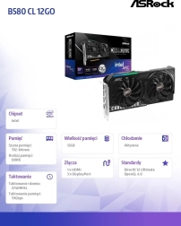 ASROCK ARC B580 Challenger 12GB OC je uravnotežena grafična kartica za moderne PC sestave. Zahvaljujoč dvojnim ventilatorjem in optimizirani zasnovi hladilnika ponuja zanesljivo zmogljivost, nizke temperature in uglajeno akustiko. Eleganten kovinski backplate kartici doda trdnost ter hkrati prispeva k boljšemu odvajanju toplote.