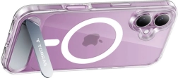 Ohišje TORRAS Pstand je zasnovano za varnost in udobje pri uporabi iPhona 16. Zahvaljujoč močnim magnetom (N56) in tehnologiji MegaMag™ se stabilno drži na magnetnih dodatkih ter podpira hitro MagSafe polnjenje. Vgrajeno kovinsko stojalo omogoča udobno gledanje videov in videoklice brez držanja telefona v roki.