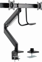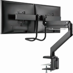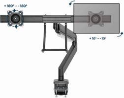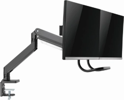 Sprostite prostor na mizi in si zagotovite bolj zdravo delovno držo s tem ergonomskim nosilcem za dva monitorja do 32". Zahvaljujoč plinskim vzmetem zlahka nastavite višino in naklon z enim dotikom, vrtljiva in izvlečna roka omogoča idealno postavitev zaslonov drugega ob drugem, čvrsta pritrditev s sponko ali skozi odprtino pa zagotavlja stabilnost na vsaki mizi.