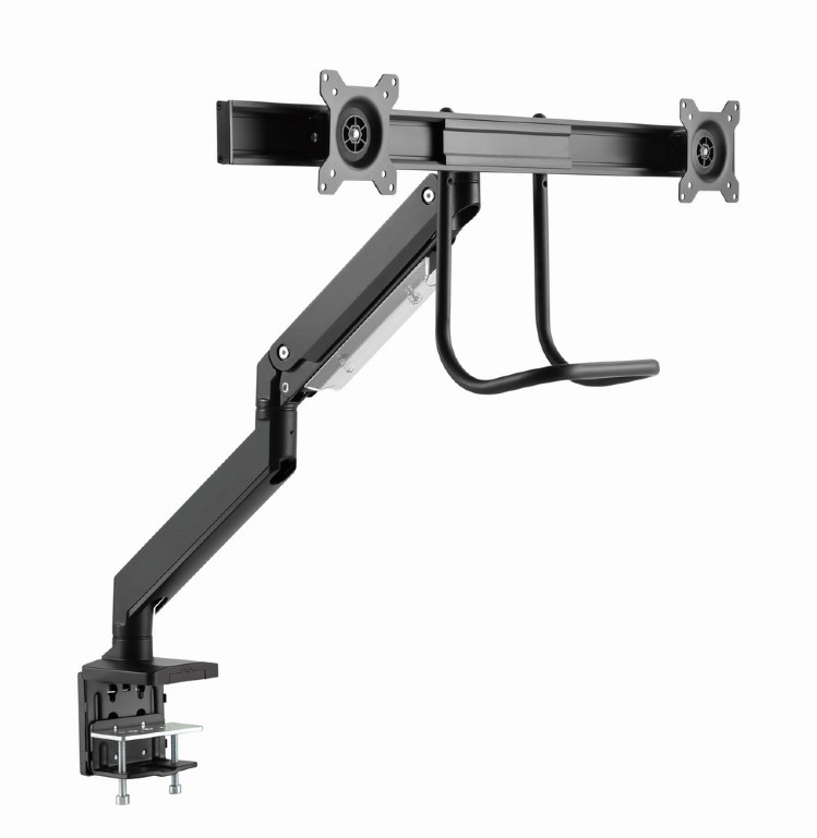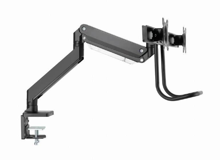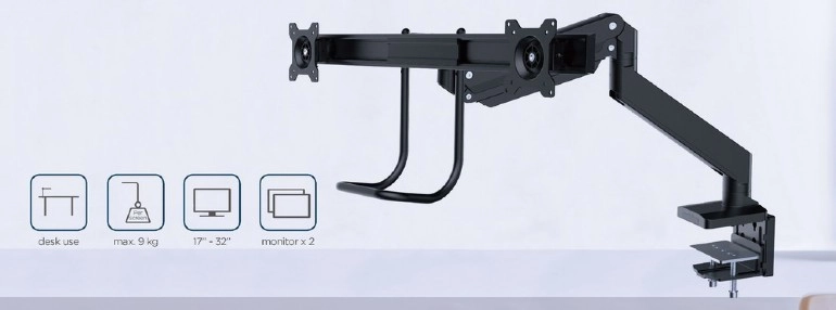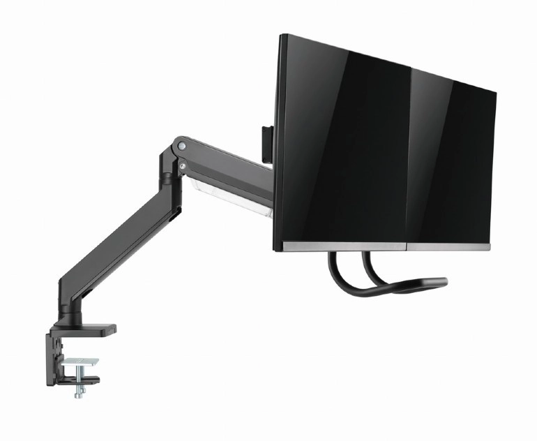 Ustvarite si široko delovno površino. Nosilec omogoča montažo in natančno poravnavo dveh monitorjev do 32" drugega ob drugem.