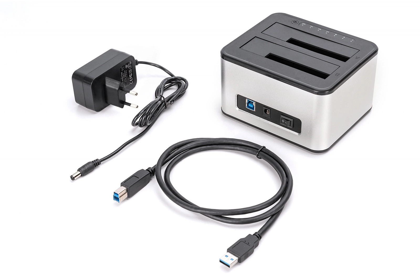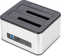 Namizna priklopna postaja Digitus zagotavlja enostaven in učinkovit način za priklop, kloniranje in varnostno kopiranje podatkov z različnih velikosti trdih diskov z visoko hitrostjo prenosa zahvaljujoč USB 3.0 in podpori SATA3.