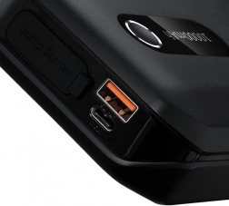 Poleg zagona vozila služi kot praktična powerbanka za polnjenje telefona ali tablice prek USB in USB‑C z močjo do 5 V/2,4 A. Vgrajena sili osvetlitev poveča varnost pri nočnih posegih. Napredne zaščite varujejo vas in vozilo pred poškodbami.