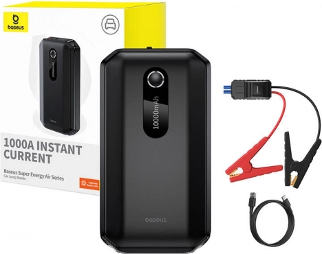 Kompakten zaganjalnik BASEUS Super Energy zanesljivo zažene vaš avtomobil tudi z izpraznjeno baterijo. Ponuja vršni tok 1000 A, kapaciteto 10000 mAh, varne zaščite pred prenapetostjo, pregrevanjem in kratkim stikom ter hkrati deluje kot powerbanka z USB in USB‑C 5 V/2,4 A. Idealno za vsak avto in zimske razmere.