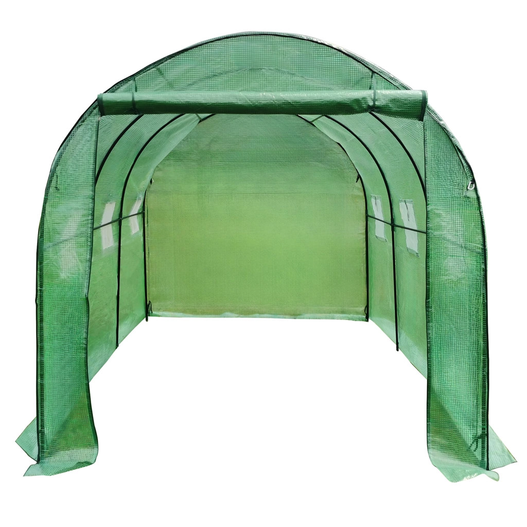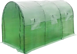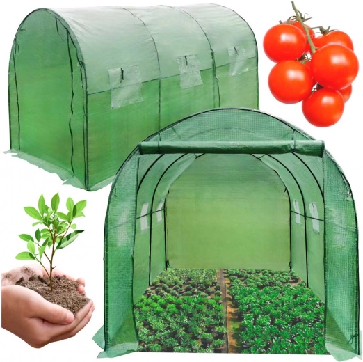 Šest zvitih oken z mrežo proti komarjem zagotavlja pravilno kroženje zraka in hkrati ščiti notranjost pred insekti. Prostoren vhod z zadrgo omogoča enostaven dostop do pridelkov in enostavno vzdrževanje.