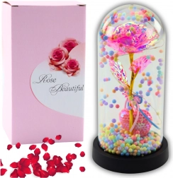 Večna vrtnica v kupoli je simbol trajnostne ljubezni in eleganten dodatek, ki očara na prvi pogled. Topla LED svetloba poudari njeno lepoto in prostoru doda prijetno, romantično razpoloženje – popolna izbira za obletnice, valentinovo, rojstne dneve in poročno dekoracijo.