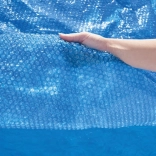 Mehurčkasta konstrukcija ponjave zajema toploto sonca in zmanjšuje njene izgube. Voda se hitreje segreje in dlje časa ohrani prijetno temperaturo.
