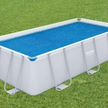 Ohranjajte vodo v bazenu toplejšo in čistejšo s solarnim pokrivalom BESTWAY. Njegova mehurčkasta struktura učinkovito izolira in segreva vodo s soncem, zmanjšuje toplotne izgube ter hkrati ščiti pred listjem, žuželkami in nečistočami. Ponjava se enostavno položi na gladino in je natančno prilagojena pravokotnim bazenom 404 × 201 in 412 × 201 cm.