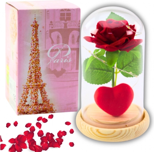 Večna vrtnica v prozorni kupoli je simbol ljubezni in predanosti, ki traja za vedno. Nežno toplo belo LED svetlobno poudari njeno lepoto in ustvari prijetno in intimno svetlobo za vsak dom. Zahvaljujoč leseni osnovi in darilni embalaži je pripravljena, da takoj razveseli.